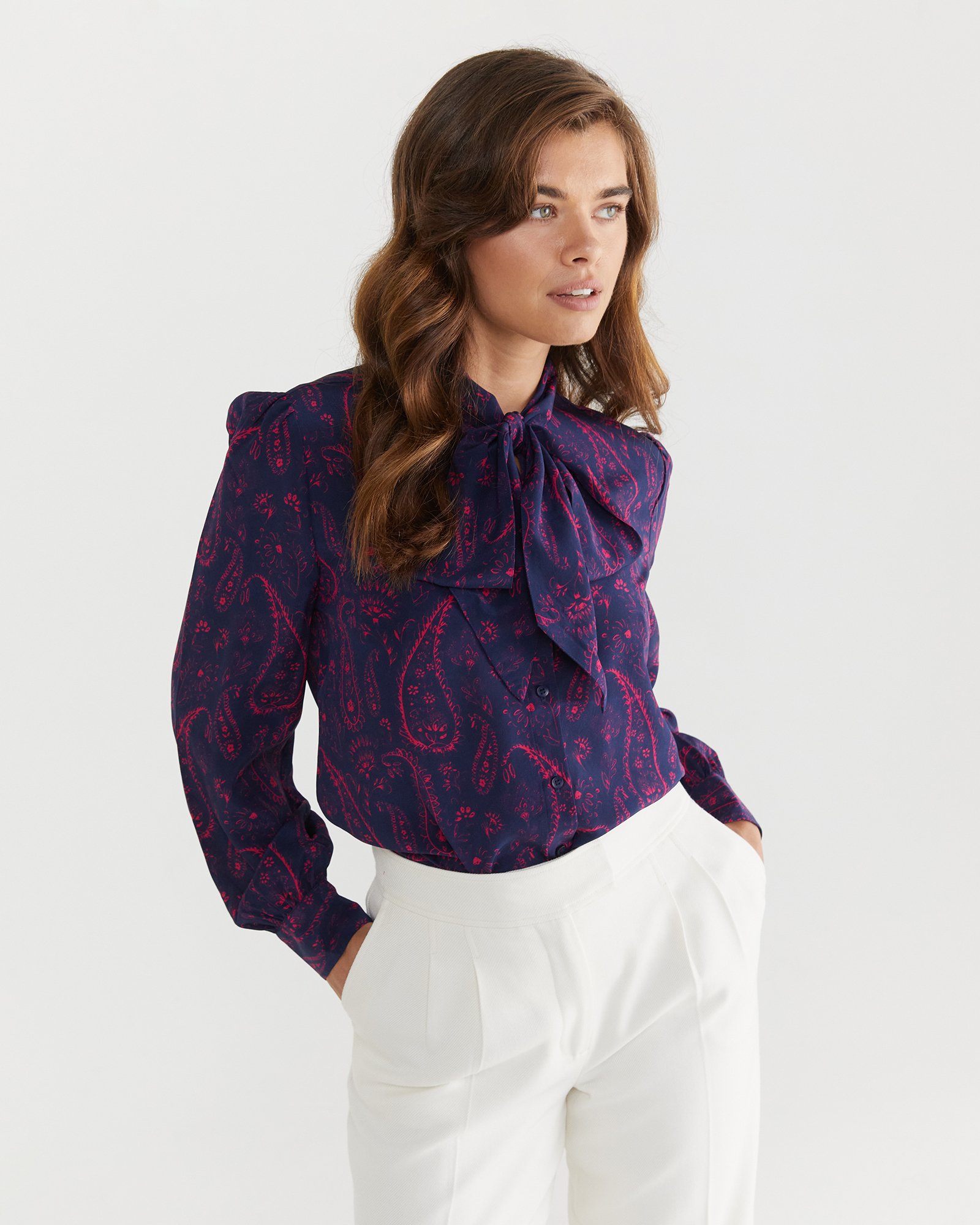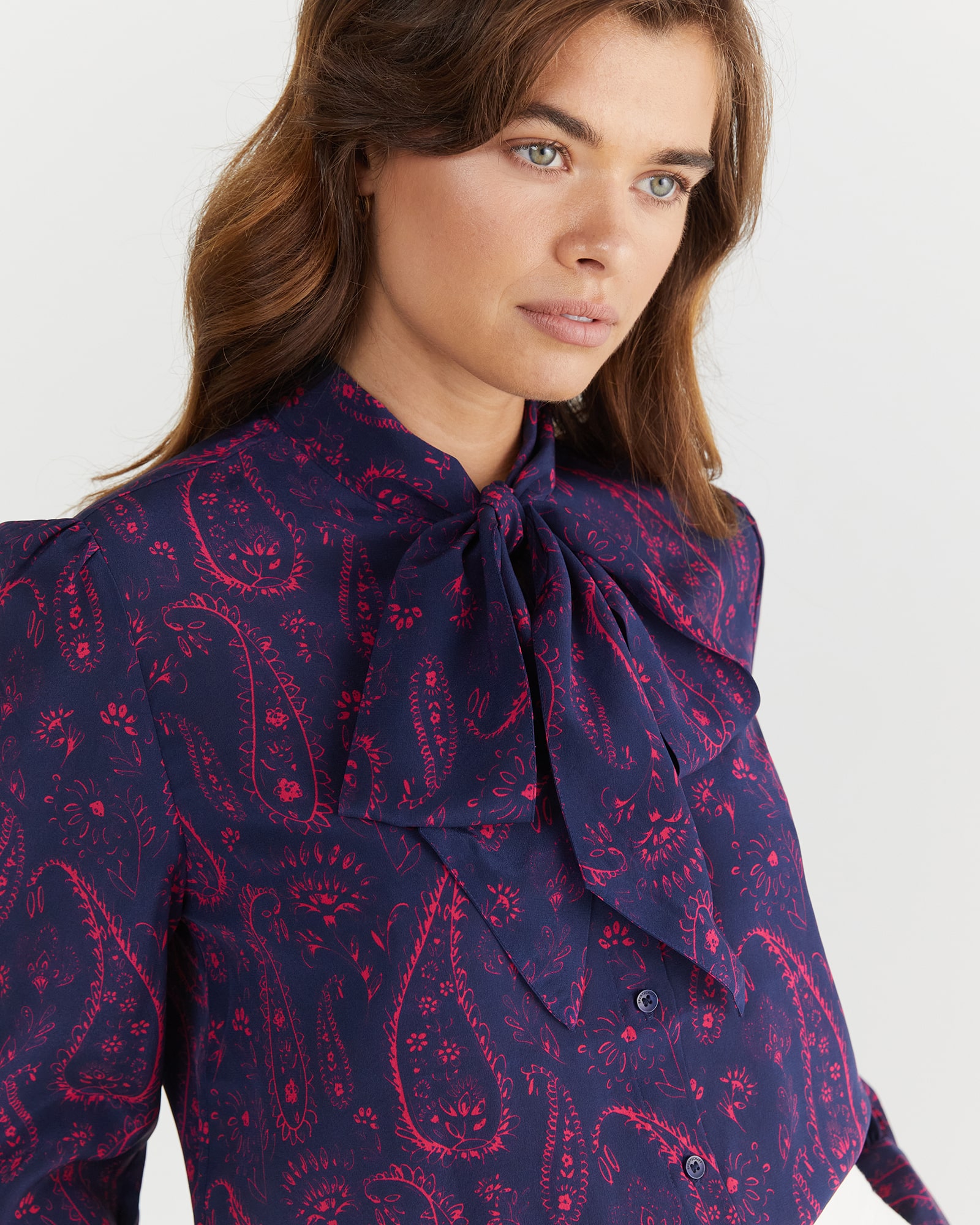 Paisley Pussy Bow Silk Shirt